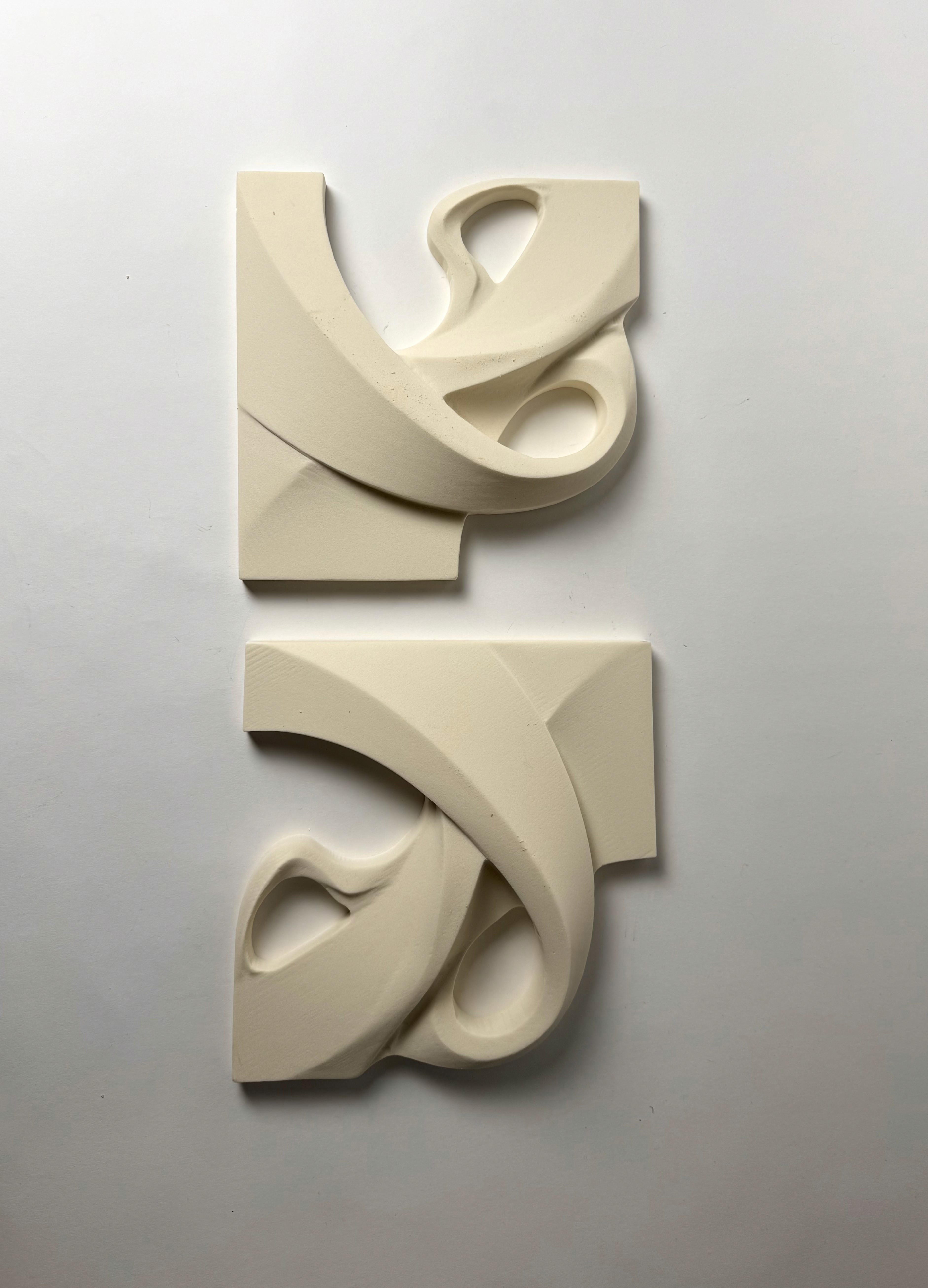 While Flourish can be cast in a series of different materials, this prototype was done in an oyster-based mycelium. The process started with a Rhino model of the form, followed by CNC of the form's front and back in foam. This was then vacuum formed to yield a PET-G mould. Mycelium was then cast in this mould, podded and placed in the drying chamber over a week long process to form the final breezeblock.