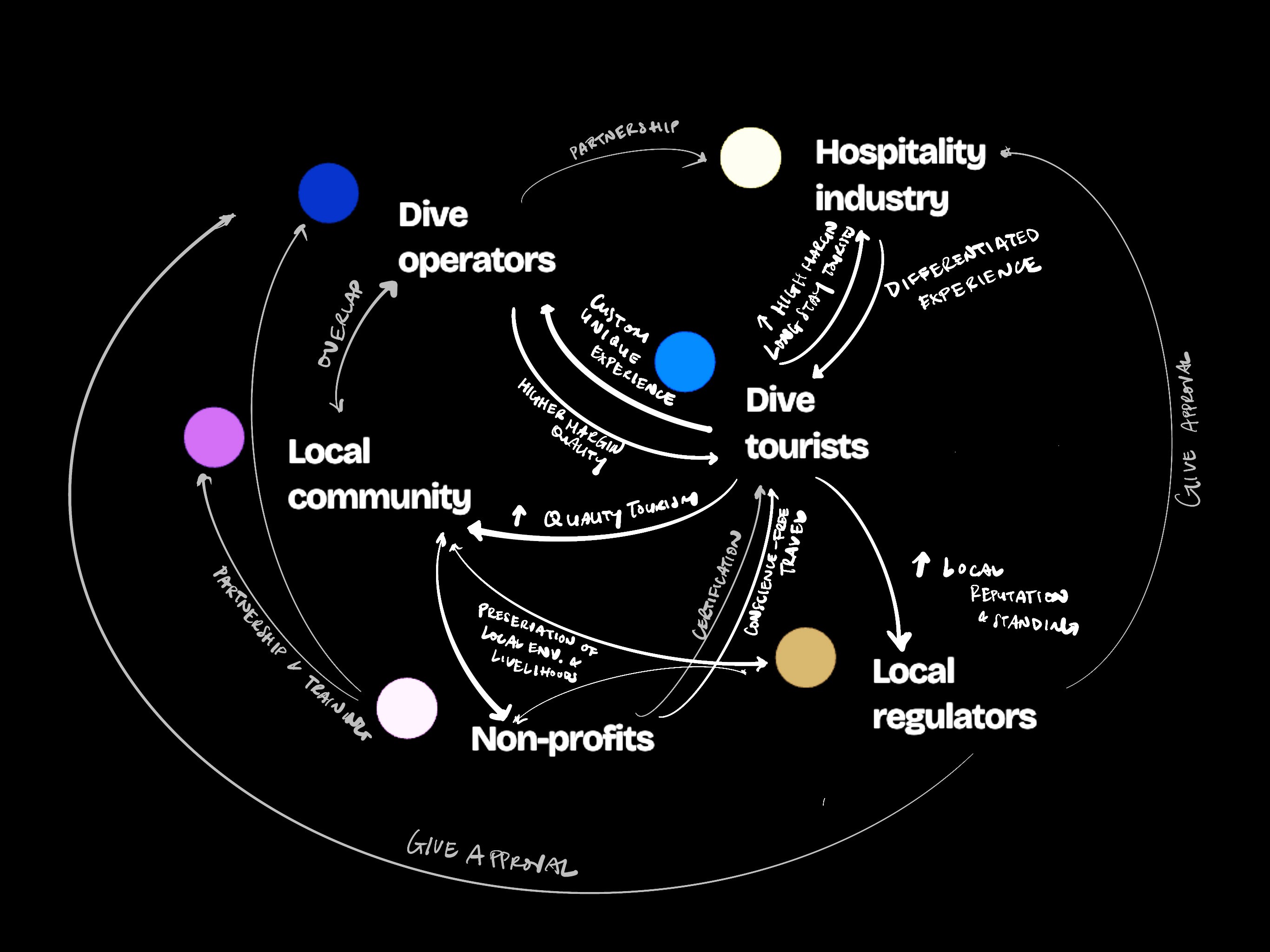 The Coral Triangle in the West Pacific is the global epicentre of marine biodiversity, but rising temperatures, acidificiation, human activity and storm damage mean that 85% of its reefs are currently endangered. Ecotourism provides one angle to support restoration efforts, supporting local livelihoods, trading volume for higher margin sustainable tourism and diverting tourists from natural reefs. The Rugosa Project is an immersive initiative designed to bring together dive ecotourism and local community involvement in the Coral Triangle to aid coral restoration. At its core is a three part system of a breakwater, anchor unit and stacking module. The breakwater adds redundancy and protection against wave damage during storms, while the base units and stacking modules combine into a flexible collection of substrate surfaces for coral regrowth.