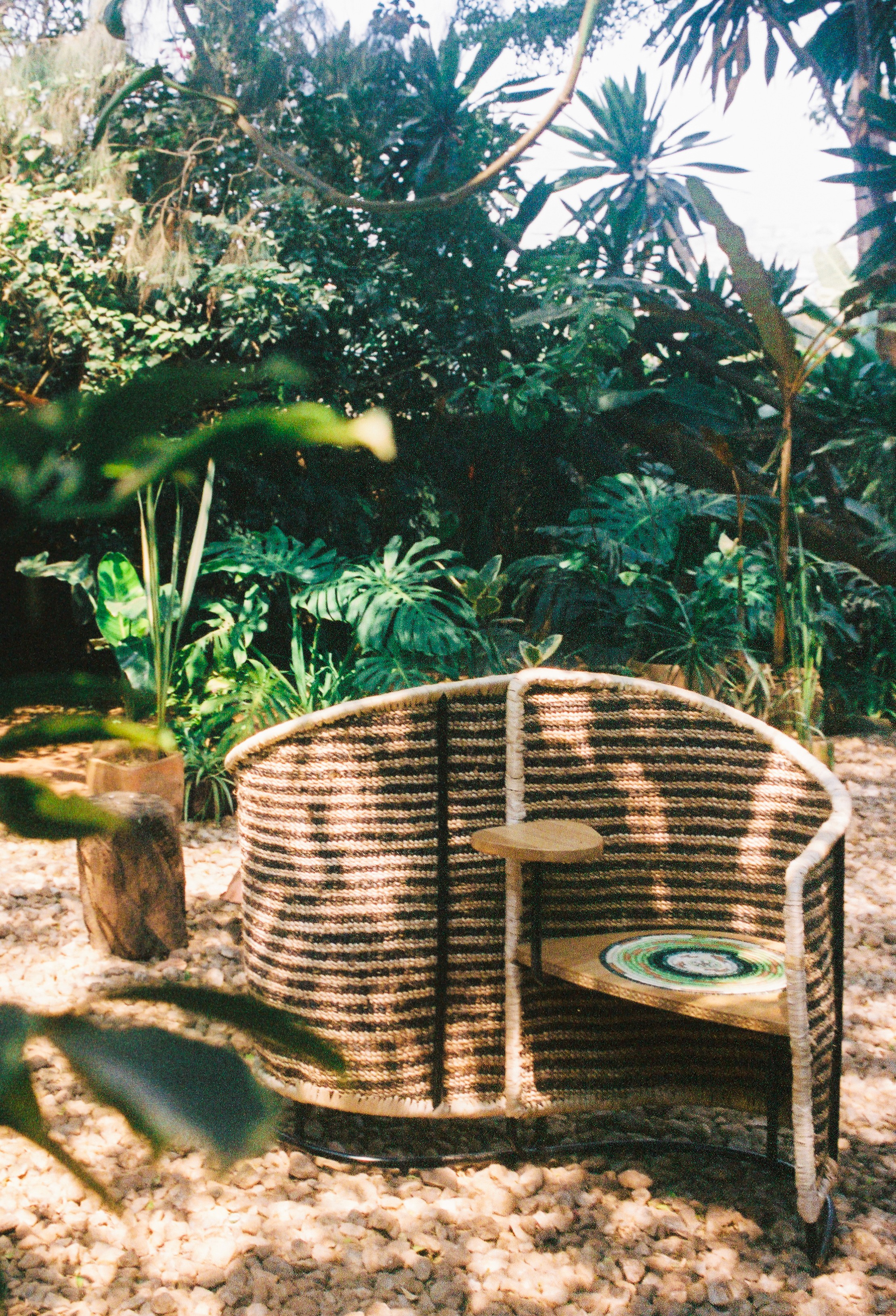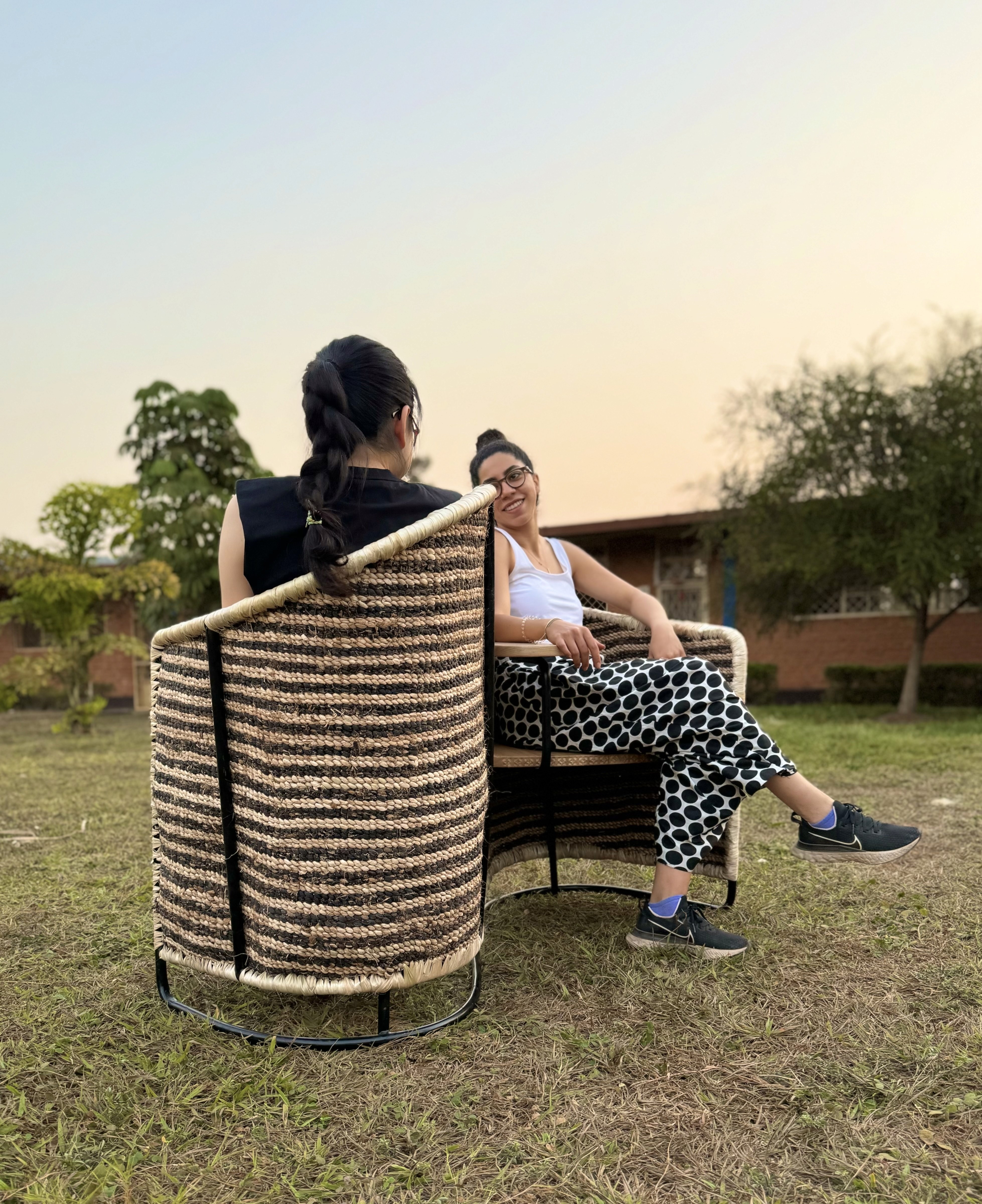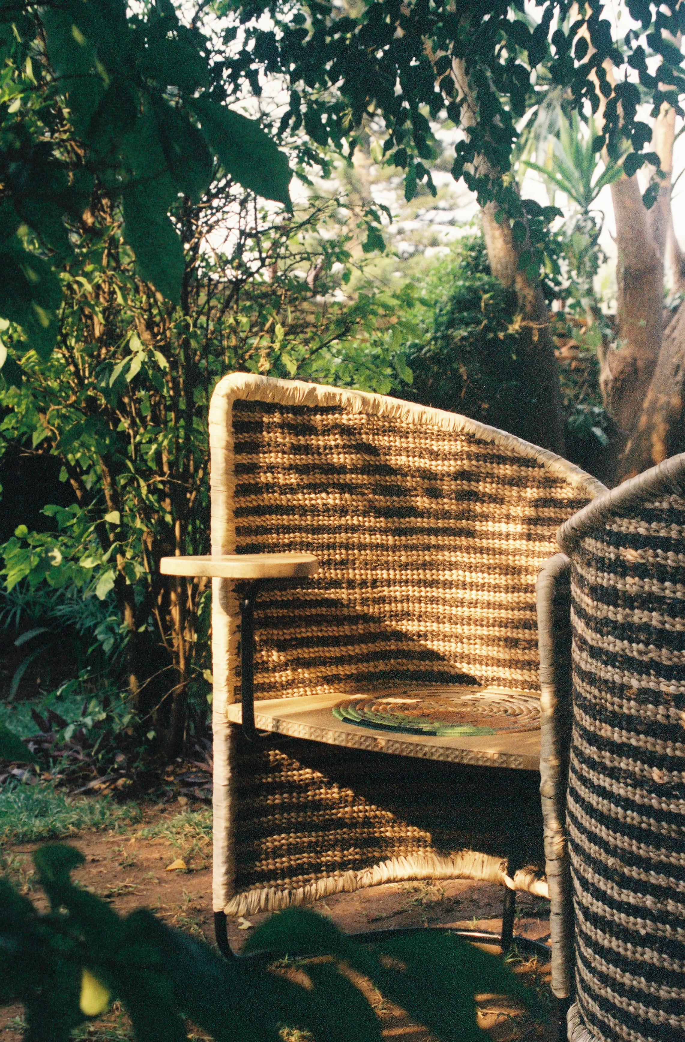 Intended to encourage exchange in convention halls and coworking spaces, Sozi is a conversation chair that marries traditional techniques with a modern silhouette to bring culture and craftsmanship into spaces of dialogue and innovation. Sozi can be configured to create either spaces for intimate engagement or individual focus. A striped banana weave sweeps upwards to form the chair back, an homage to Rwanda’s undulating topography. Nestled in its curve is a seat of wood and sisal, with patterning inspired by scenes from local homes. In so doing, Sozi celebrates the coming together of the land and its people.