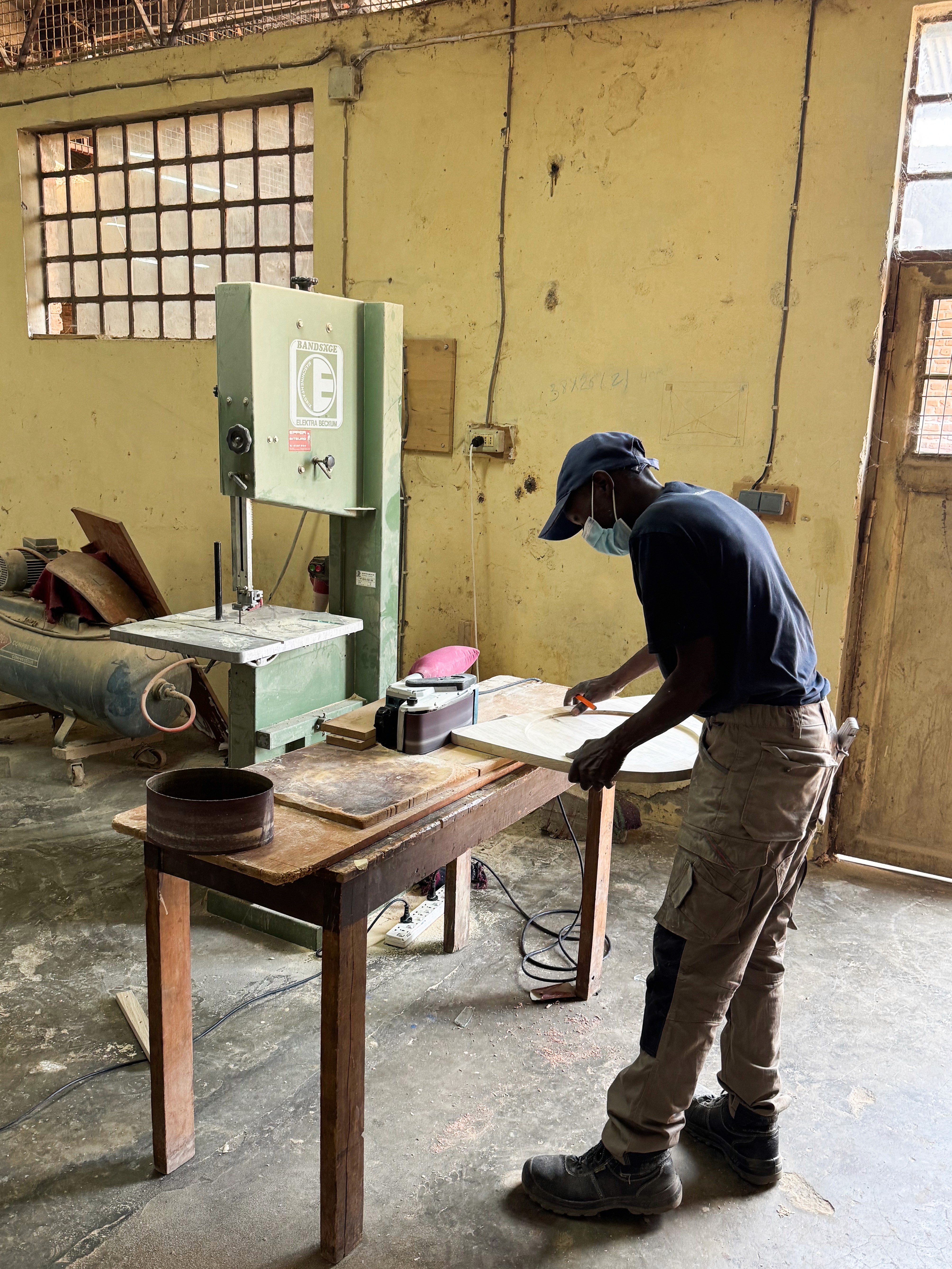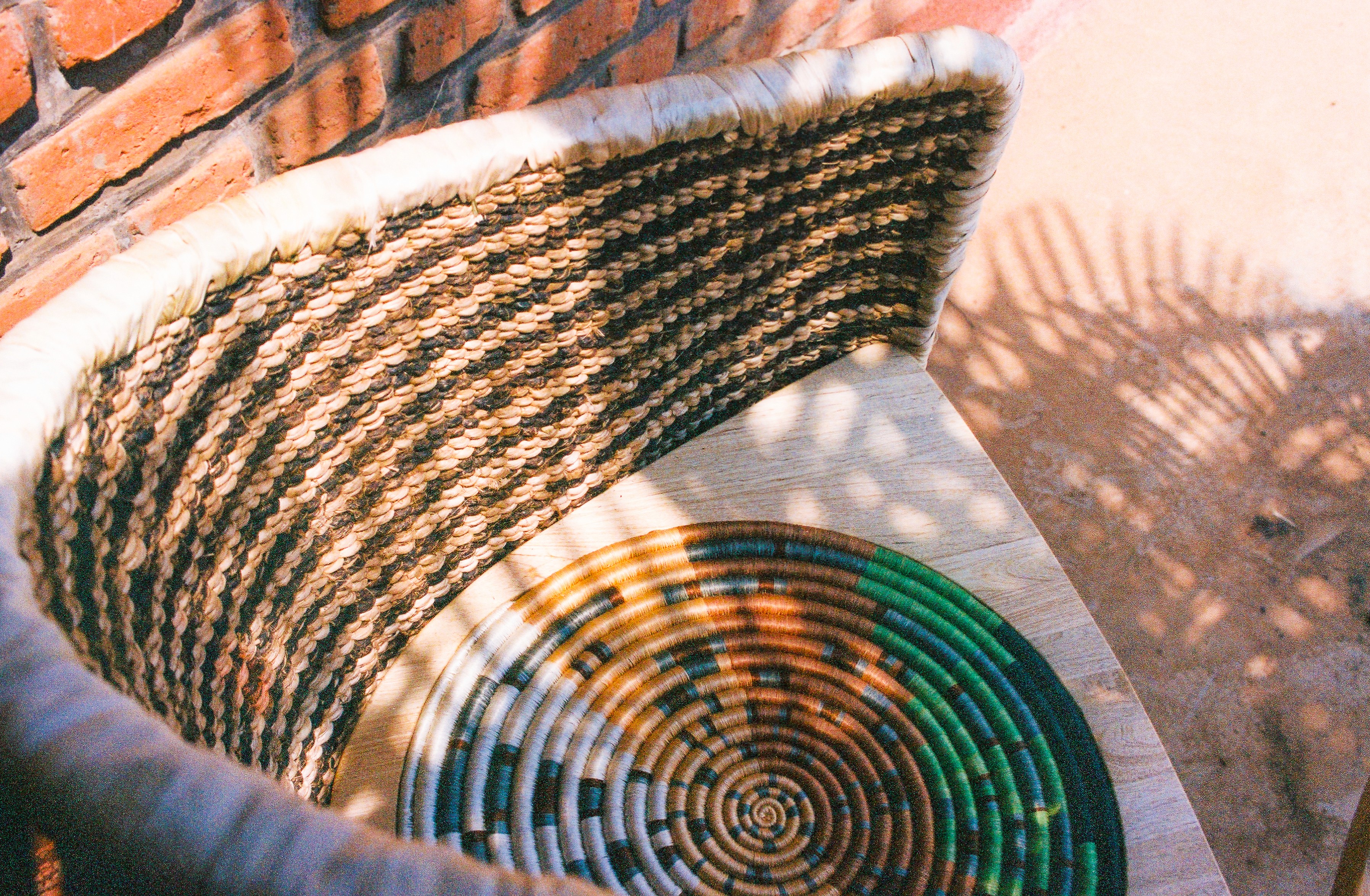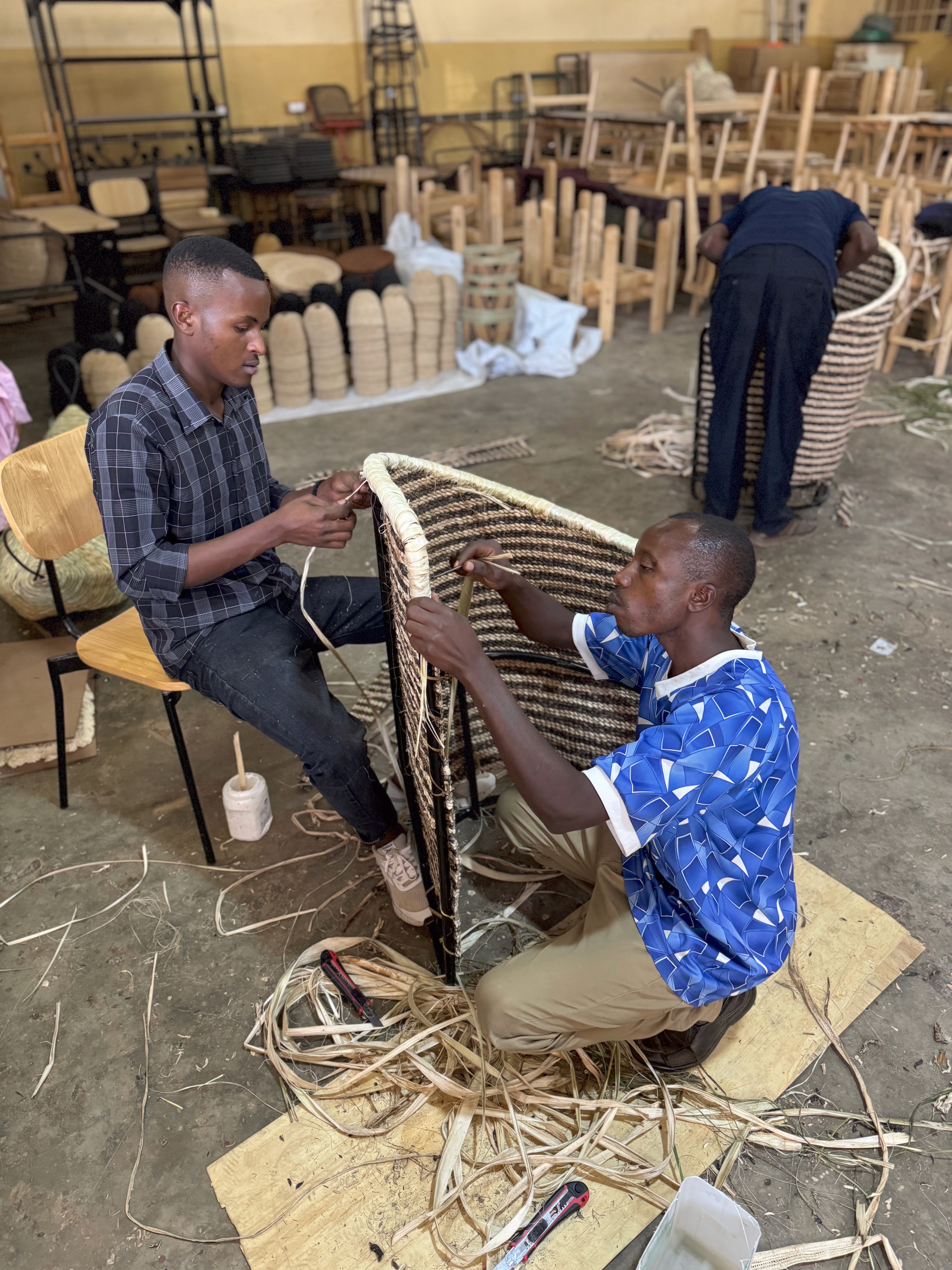 Banana husk and fiber, steel, sisal fiber, savannah grass, umusave wood